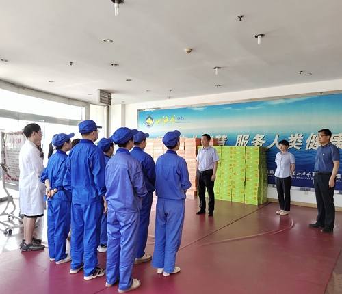 炎炎盛夏,三伏天至。為深入推進主題教育“我為群眾辦實事”活動,7月19日,陜藥集團黨委副書記、工會主席肖志強、群眾工作部部長哈南等一行3人來到山海丹藥業(yè)開展“夏送清涼”慰問活動,集團工會為高溫天氣中堅守奮斗在崗位一線的職工購買了清涼飲品等降溫物資156份,及時把組織的關心和關懷送到職工手中。肖志強與現(xiàn)場職工親切交流,深入了解各崗位職工的工作情況,感謝大家在炎熱夏季發(fā)揚勞動精神、堅守工作崗位,叮囑大家在緊張工作的同時,要時刻把安全生產(chǎn)放在首位,高溫作業(yè)時要注意做好防暑降溫工作,注意人身安全。