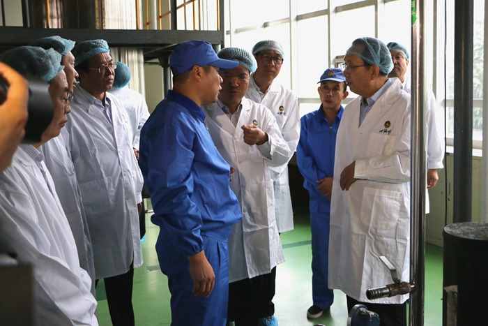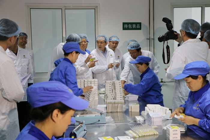 2015年9月29日上午,陜西省省委常委、紀(jì)委書記郭永平一行在陜藥集團(tuán)黨委書記昝安勝、董事長翟日強(qiáng)、總經(jīng)理李西乾、紀(jì)委書記朱兆奇陪同下到山海丹藥業(yè)參觀指導(dǎo)工作