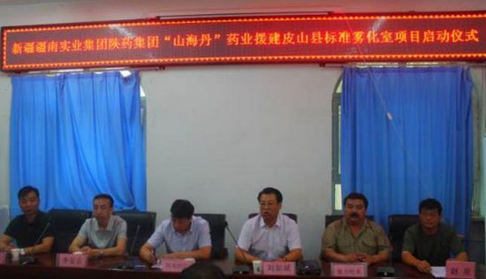 2016年7月18日,由陜西醫(yī)藥控股集團(tuán)山海丹藥業(yè)有限責(zé)任公司攜手新疆疆南實(shí)業(yè)集團(tuán)免費(fèi)為新疆和田地區(qū)皮山縣所有公立醫(yī)療機(jī)構(gòu)援建標(biāo)準(zhǔn)霧化室項(xiàng)目啟動(dòng)儀式在皮山縣科克鐵熱克鄉(xiāng)衛(wèi)生院隆重舉行,皮山縣縣委副書(shū)記阿布拉江·托合提、陜西醫(yī)藥控股集團(tuán)山海丹藥業(yè)有限公司董事長(zhǎng)、黨委書(shū)記劉如斌先生等出席了剪彩儀式。